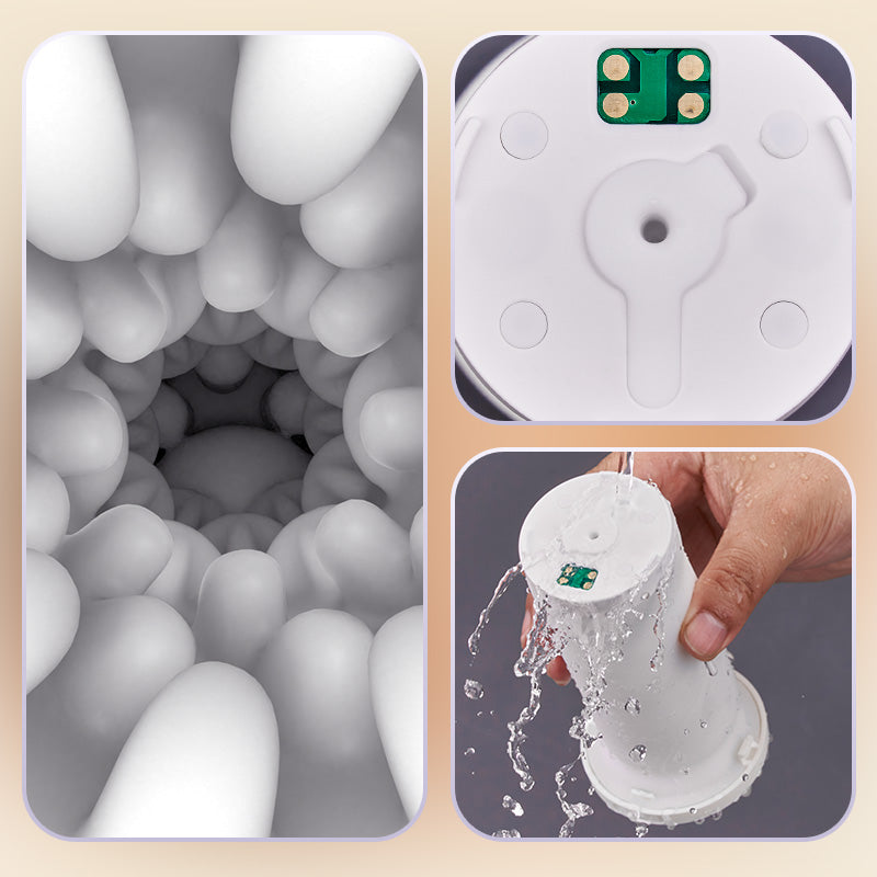 - La funda interior cuenta con un diseño de masaje 3D con una estructura granulada. Esta estimula continuamente cada parte de la piel y proporciona una sensación incomparable de confort y fricción. Cada movimiento de expansión y contracción, así como el modo de vibración, se complementan perfectamente, revitalizando cada detalle y garantizando el máximo confort y satisfacción.