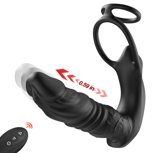 Juguete anal realista para la próstata con 9 modos de vibración y doble anillo para máximo placer