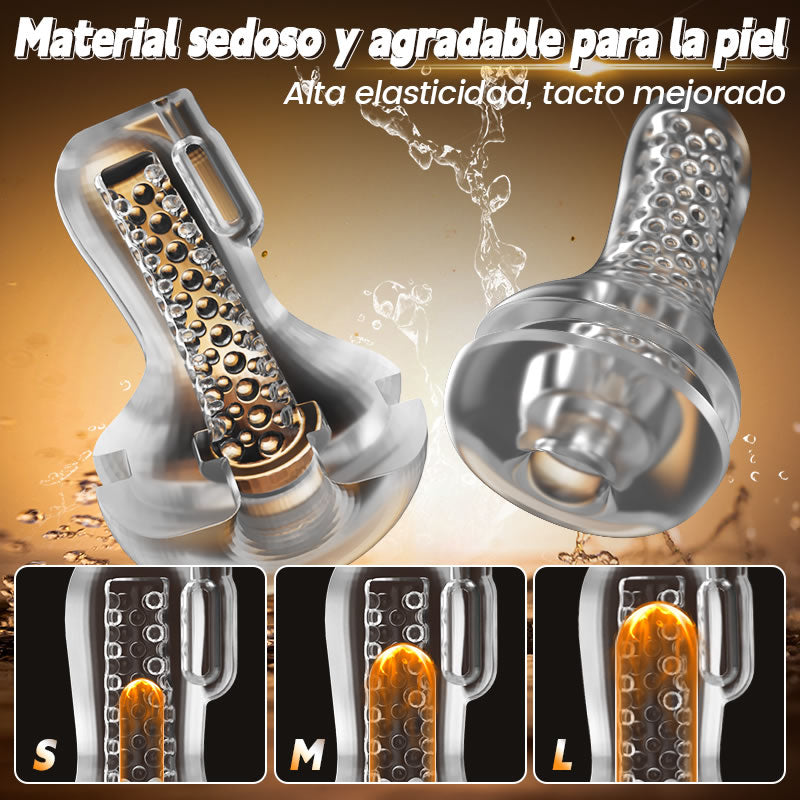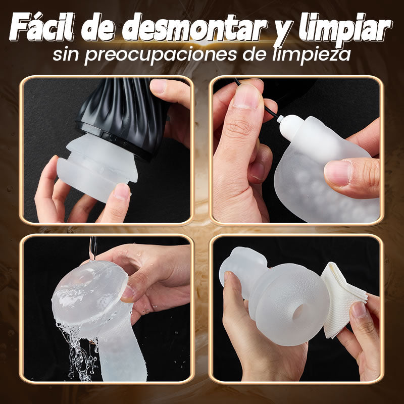 Vuelves a ajustar la vibración, la combinas con el efecto de succión y, mientras la carcasa se retuerce, sientes un placer indescriptible, como si cada célula de tu cuerpo celebrara.
