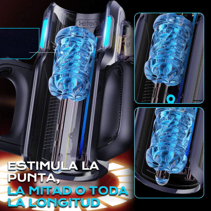 Carrera del pistón extendida de hasta 12 cm para una experiencia personalizable, ocupando toda su longitud para un placer profundo y superficial.