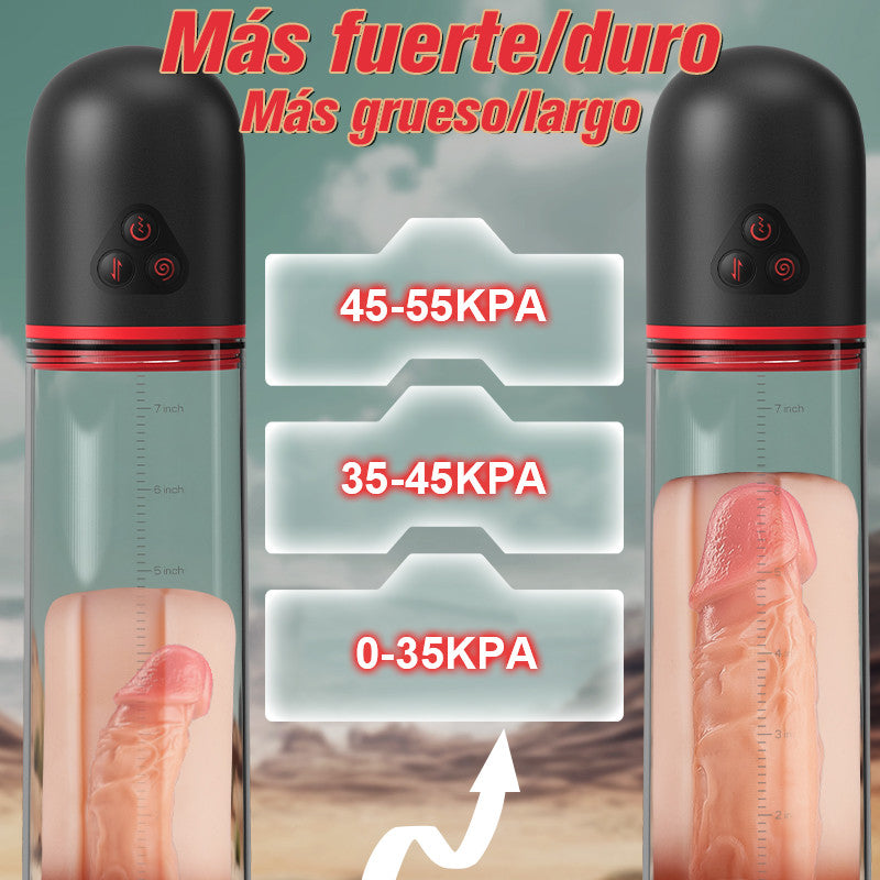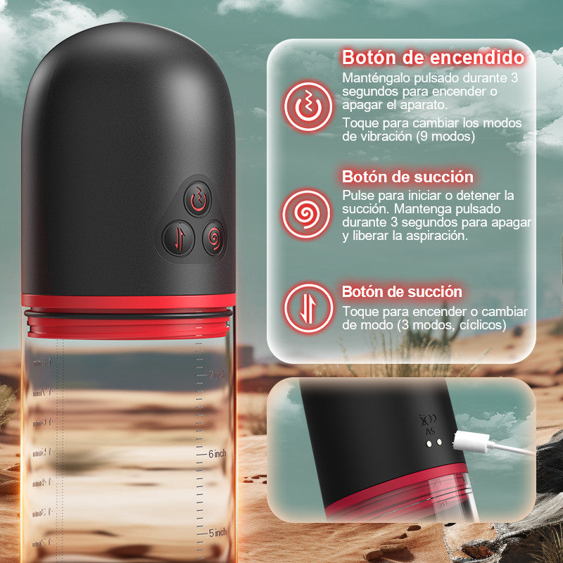 No te pierdas este fantástico potenciador masculino que te brinda placer íntimo y estimulación fisiológica. La entrada está diseñada con la forma de labios realistas en 3D, lo que actúa como un gran estímulo visual y contribuye significativamente al aumento de la libido. Este aumento de la libido va acompañado, por supuesto, del deseo de estimulación física posterior contra el pene. No te preocupes, todos tus sueños sexuales se harán realidad. Activa cualquiera de los 9 modos de succión. Con la funda de silicona con forma de vagina que rodea tu pene firmemente, creando un sellado hermético, sentirás cómo el aire dentro de la cámara se expulsa lentamente, aumentando así la presión interna. Tu pene parecerá extenderse hacia adelante. ¡Y puedes apreciar este sorprendente cambio intuitivamente a través del cilindro transparente! Además, la función de vibración realzará aún más el ejercicio. Además, sus vibrantes protuberancias y crestas te brindarán un placer de roce inesperado durante todo el recorrido. ¡Fácil acceso al orgasmo! Además, el juguete se puede cargar por USB, lo que hace tu vida sexual más fácil y cómoda.